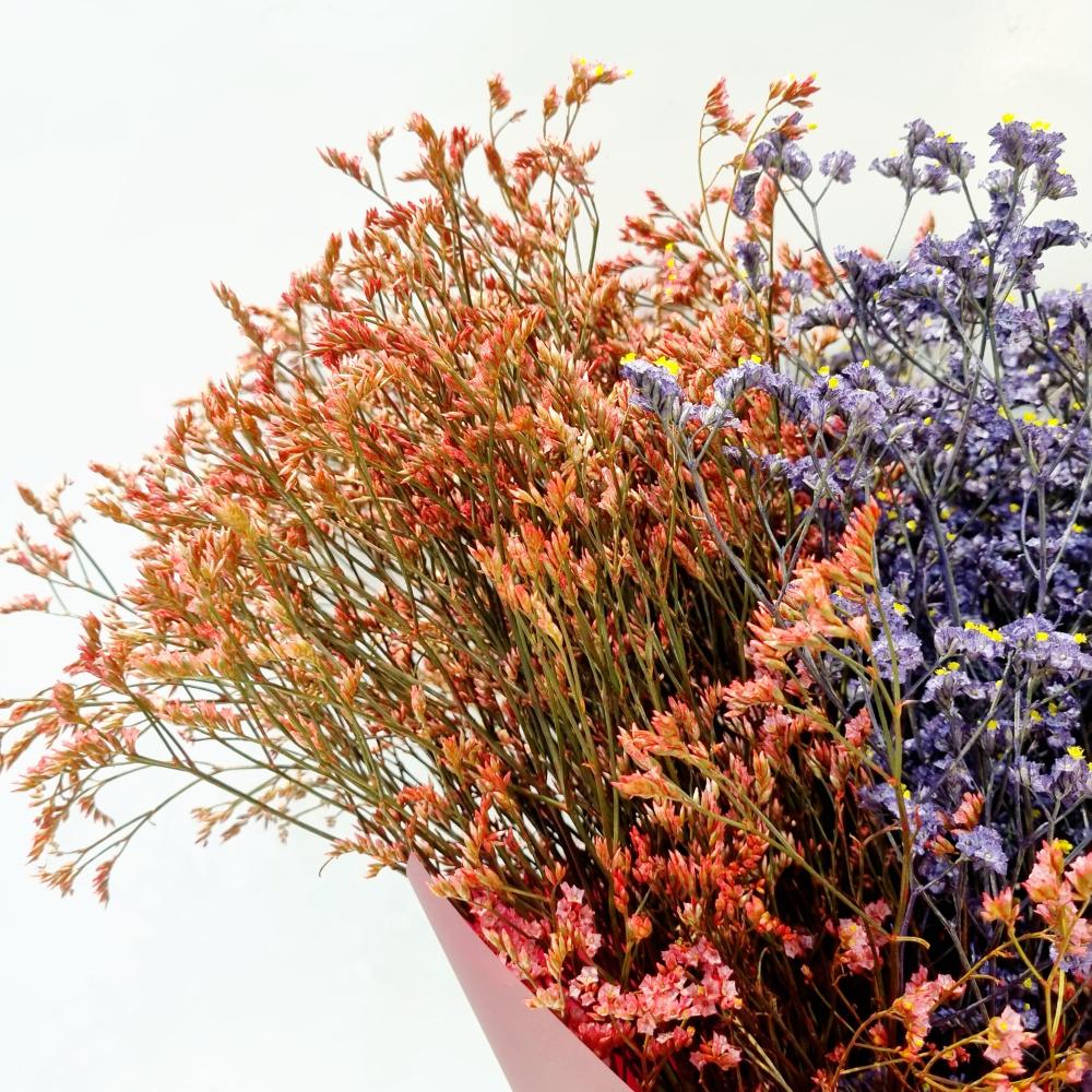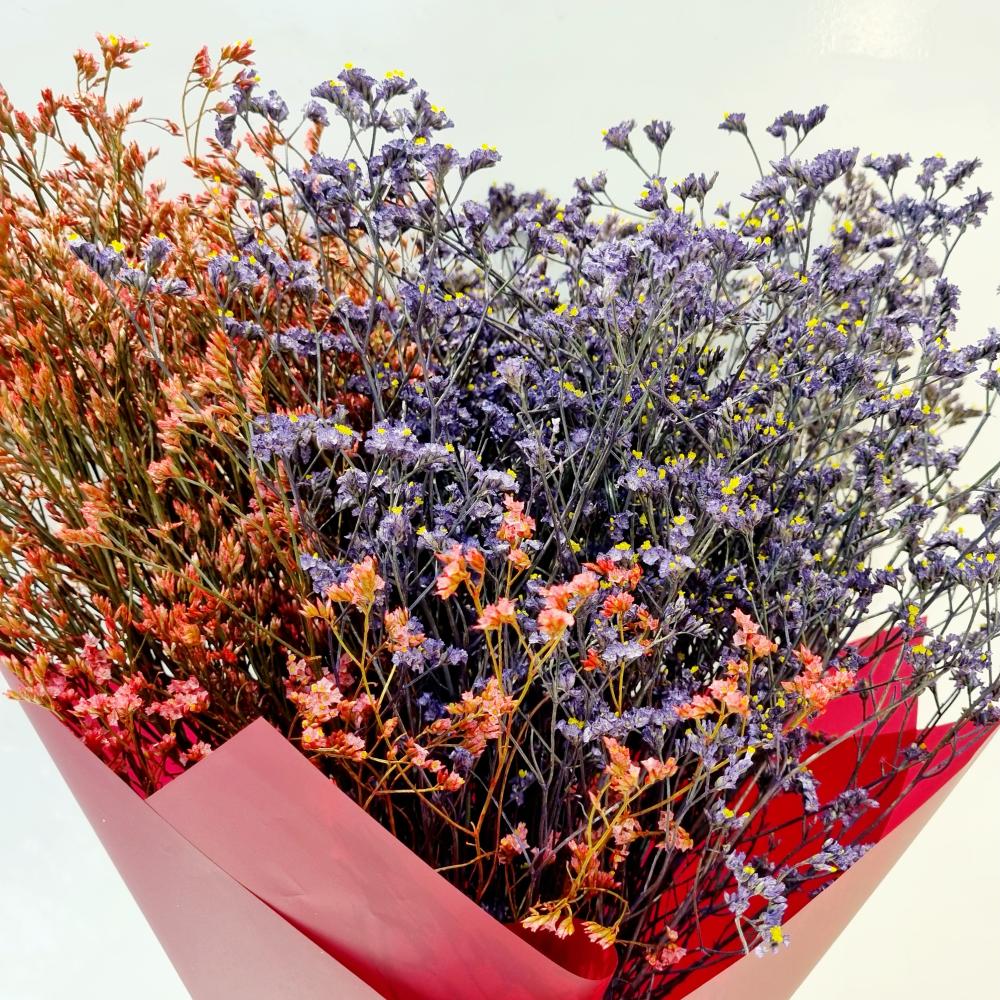 تتجلى الهدية بأغصان المونيا الفاخرة بألوان الموف والأحمر المتدرج، وتُقدم بتغليف شفاف بلون أحمر هادئ، يضيف لمسة من الفخامة والذوق الرفيع.